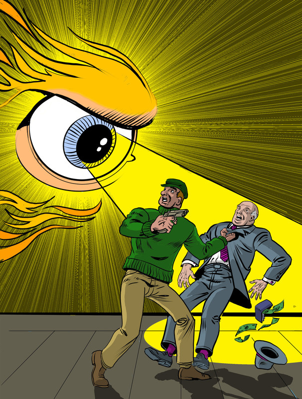 The Eye is more homicidal than ever. He(?) is apparently a fierce protector of American immigration law. Just when did smuggling clueless immigrants into the USA become a capital offense? The Eye not only murders the traffickers but also takes sadistic pleasure in watching them die. Nice guy!